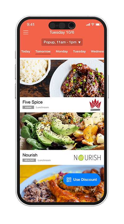 With Fooda, employees order their own meals from a rotating selection of local restaurants through our easy-to-use platform and app.
