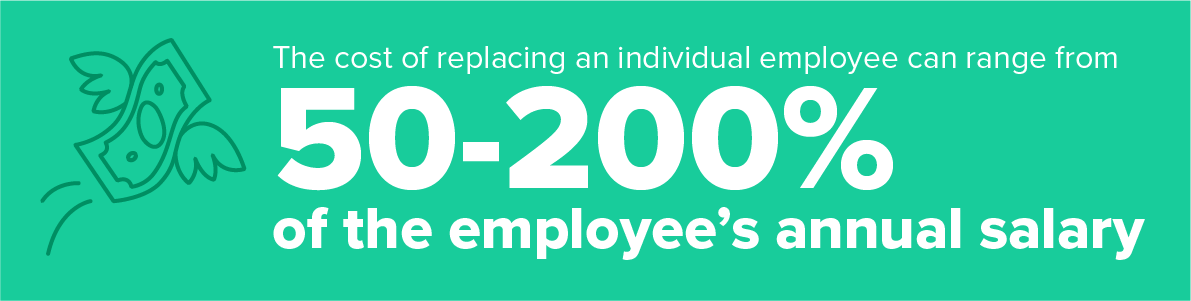 It’s very difficult to quantify the amount of time, effort, and money it will take to replace them. But according to studies from Gallup, “The cost of replacing an individual employee can range from 50% to 200% of the employee's annual salary, and that's a conservative estimate.”