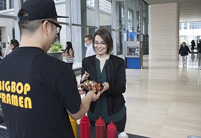 Probably the most popular option to emerge in the last few years. Instead of running a full kitchen, buildings bring in a rotating mix of local restaurants. Tenants get: